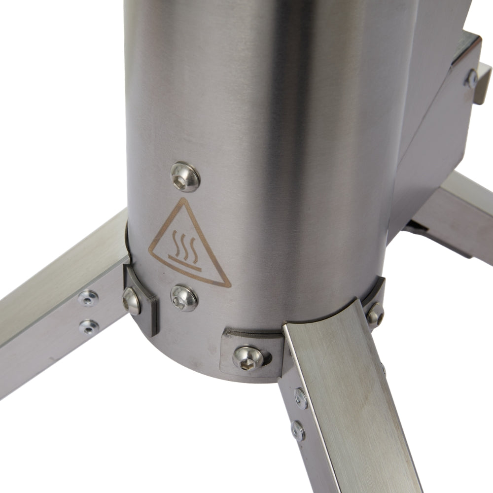 Das silberne Klassik Modell erzeugt eine eindrucksvolle Feuersäule mit einer Höhe von bis zu 1 Meter. Durch die optimierte Luftzufuhr entsteht ein gleichmäßiges und lebendiges Flammenbild, das sofort Atmosphäre schafft und zum Blickfang in deinem Außenbereich wird.